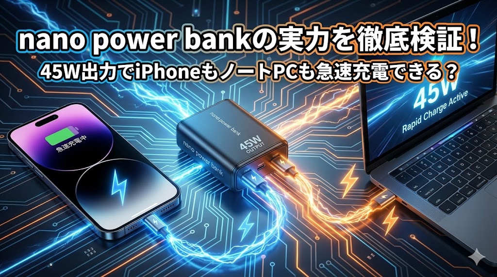 Nano Power Bankは、ケーブルを内蔵しながらも45Wの高出力に対応し、スマホからノートPCまで幅広く急速充電できる万能なモバイルバッテリーです。